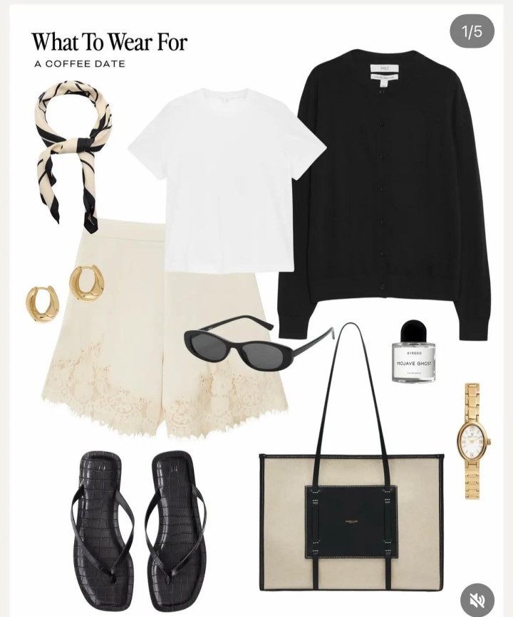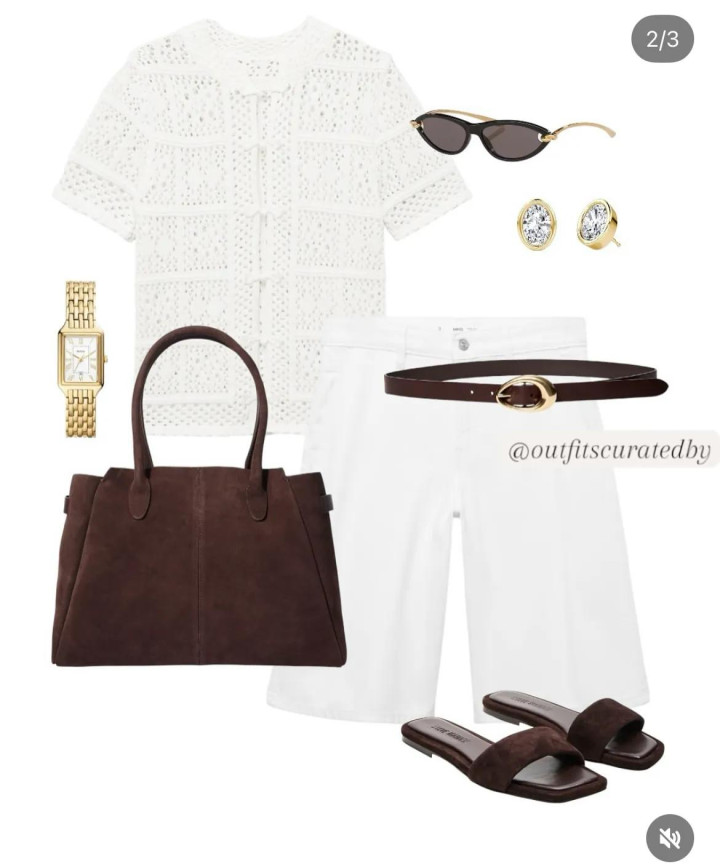 镂空元素自带浪漫感,把开襟小衫也穿出了甜美感还不会太过稚嫩。再穿起干练短裤,一身白衣干净又洋气。再花点心思,用深咖色作为配饰,立刻增加搭配小心思。